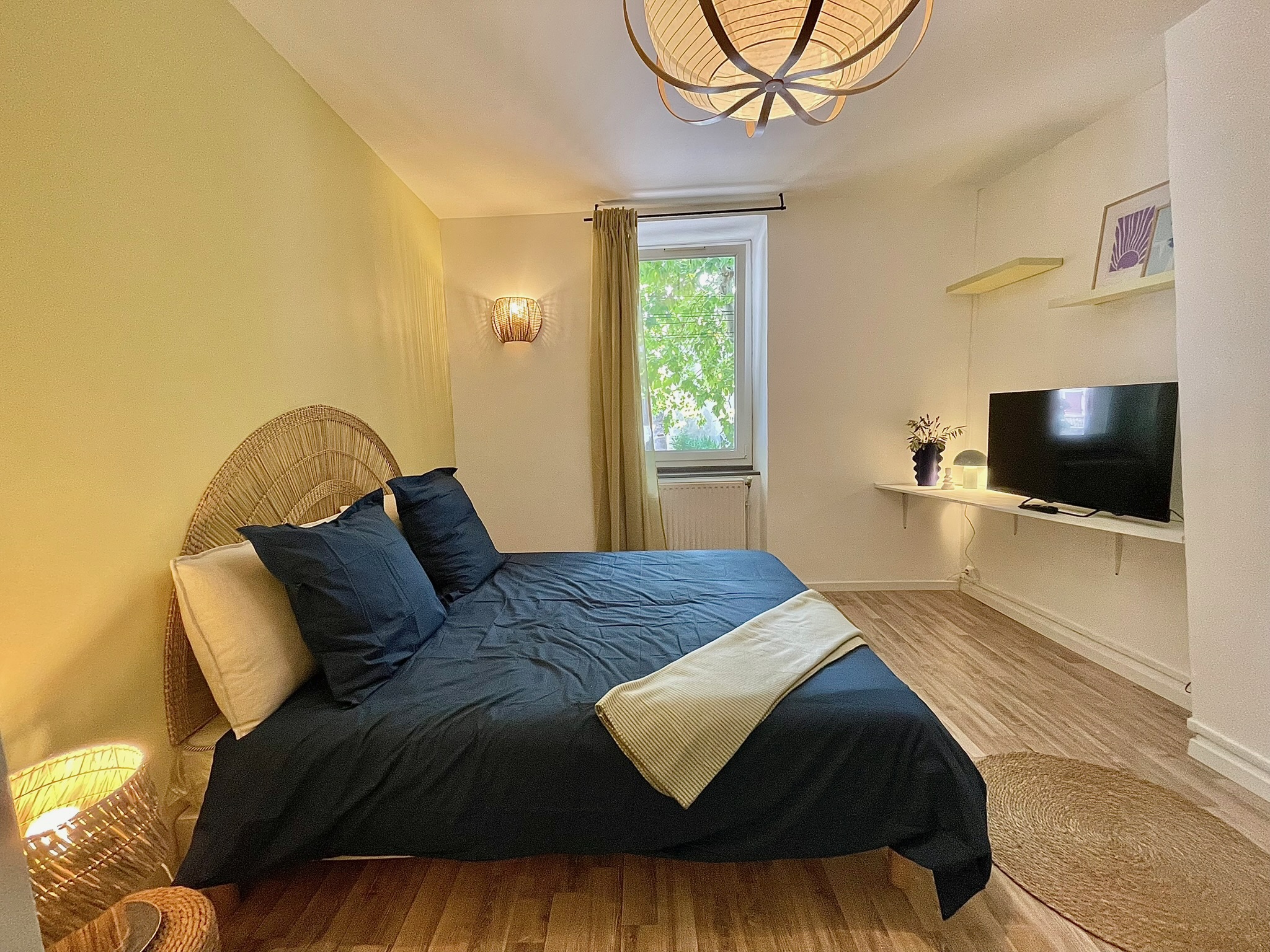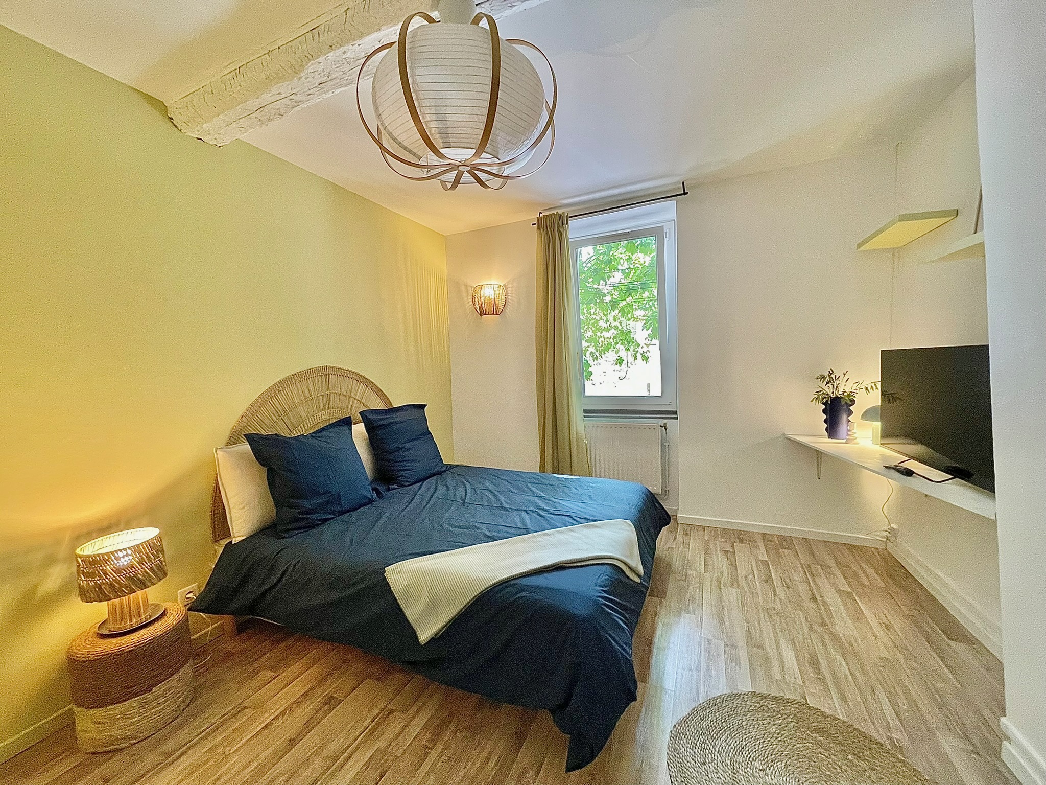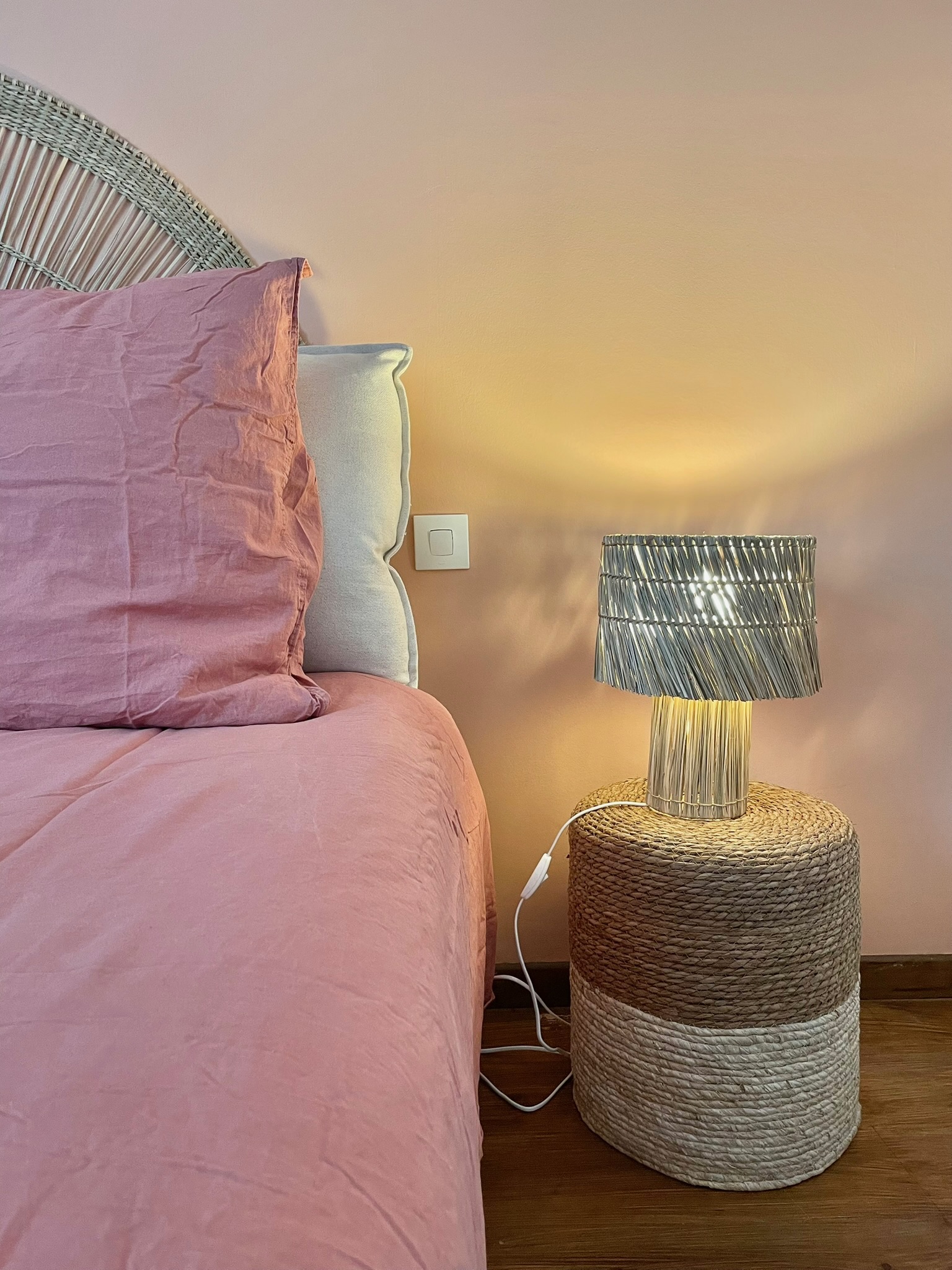 Chaque chambre dispose d’un lit double 160×200, d’une salle d’eau privative, de WC indépendants et d’une TV écran plat. Les ambiances varient, pour répondre à toutes les sensibilités : Ici nous vous accueillons dans la suite Bonbon, un cocon chaleureux baigné de lumière douce. Les tons rose et terre cuite, lin et rotin évoquent la nature du sud et créent une ambiance intime et enveloppante. Vous y trouverez un lit double 160×200, une salle d’eau privative avec douche à l’italienne, des WC indépendants, ainsi qu’une TV écran plat. Parfaite pour un séjour en couple ou en solo, cette suite invite à la déconnexion, entre matières naturelles et calme profond.
